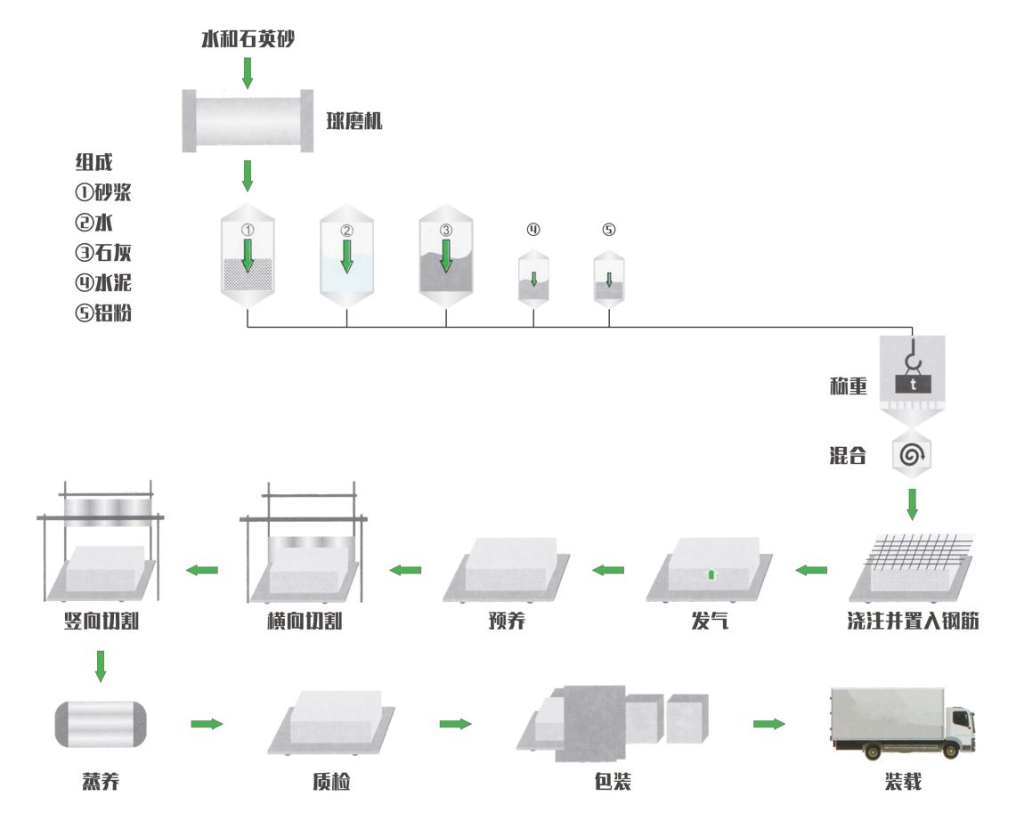 蒸壓加氣混凝土板材是以水泥、石灰、硅砂等為主要原料再根據結構要求配置添加不同數量經防腐處理的鋼筋網片的一種輕質多孔新型的綠色環保建筑材料。經高溫高壓、蒸汽養護,反應生產具有多孔狀結晶的蒸壓加氣混凝土板材,其密度較一般水泥質材料小,且具有良好的耐火、防火、隔音、隔熱、保溫等無與倫比的性能。